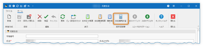 つきましては、すでに本不具合の影響を受けている児童生徒(の支給履歴)を修正するために、Ver. 3.2.1.0 以降のプログラムの「支給額の再計算」を行っていただきますようお願いいたします。